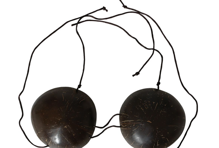 - Biustonosz składający się z dwóch miseczek kokosa – każda o obwodzie około 33 cm.