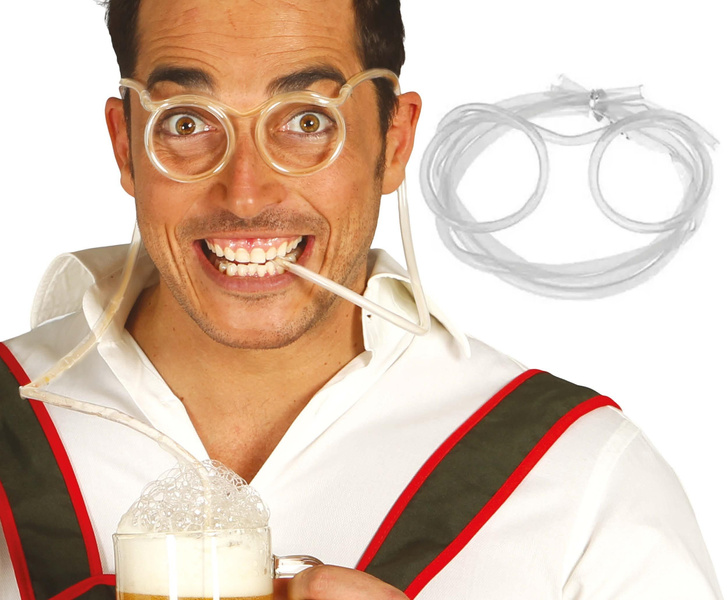 Wystarczy włożyć końcówkę słomki do napoju i przepłynie on przez okulary aż do drugiego końca słomki, który trzymamy w ustach.