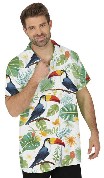 Posiada nadruk tukanów oraz różnych listków raz kwiatków.
