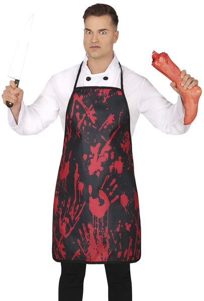 Fartuch plamiony czerwoną farbą, imitującą krew.