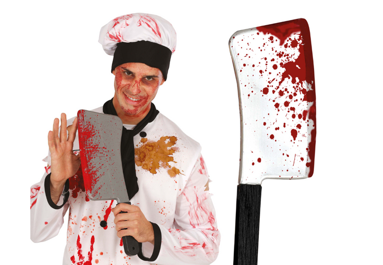 - Realistyczny wygląd z intensywnymi czerwonymi plamami imitującymi krew.