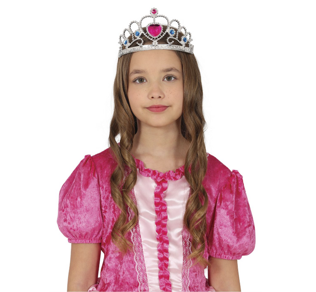 - Tiara w kolorze srebrnym ozdobiona centralnym motywem w kształcie serduszka.