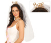 Posiada napis "Bride" oraz ma doczepiony biały welon.