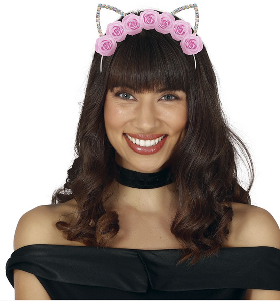 OPASKA NA GŁOWĘ Z KWIATAMI I USZAMI