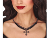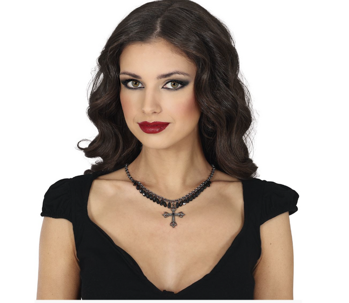 Naszyjnik z Krzyżem i Czarnymi Kamieniami – Gotycki.