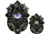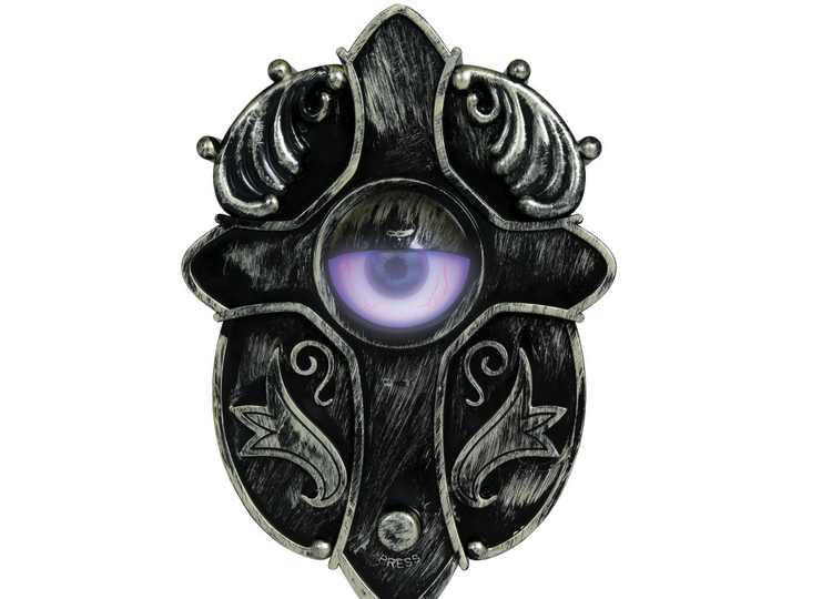 - Po naciśnięciu przycisku PRESS oko otwiera się, rozświetla intensywną zielenią i zaczyna spoglądać na odwiedzających.