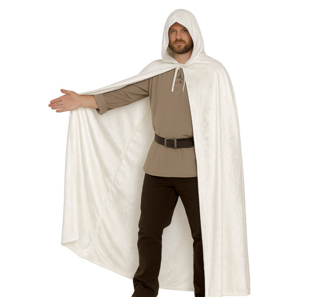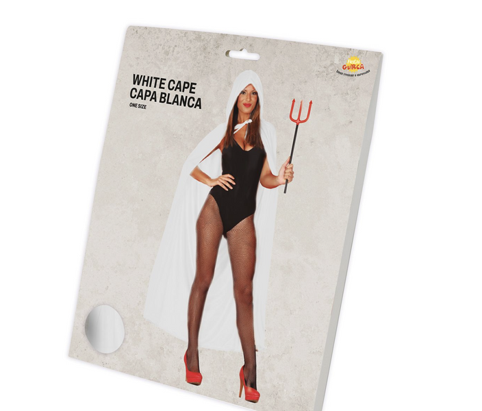 BIAŁA AKSAMITNA PELERYNA Z KAPTUREM 130 CM
