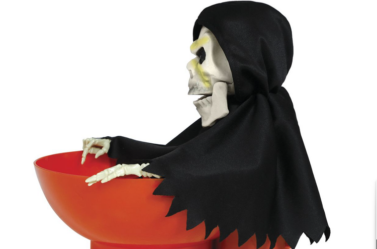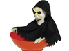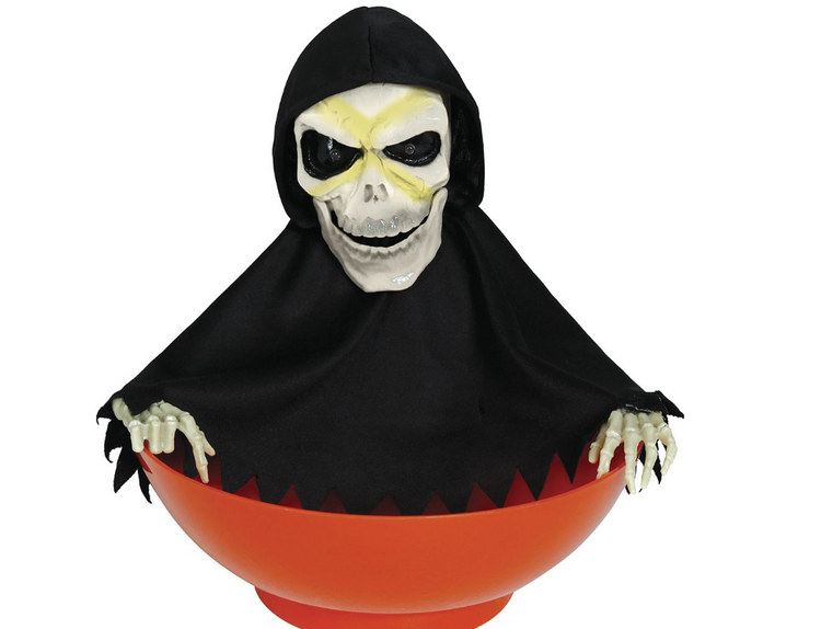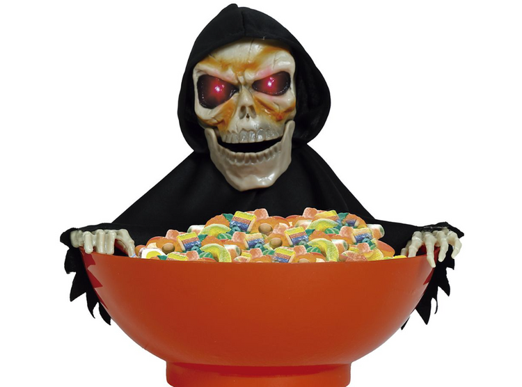 - Pomarańczowa miseczka z szkieletem o wymiarach 24 x 23 cm.