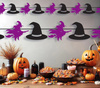 Flagietki w kształcie kapelusza oraz wiedźmy na miotle.