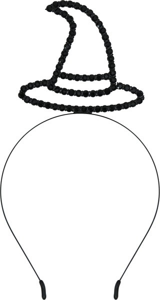 Metalowa Czarna Opaska z kapeluszem czarownicy i Diamencikami.
