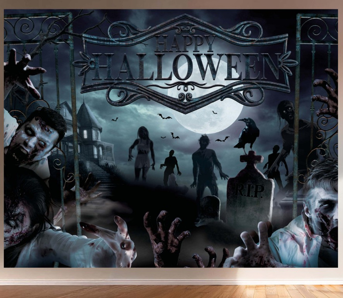 Zdobione nadrukiem zombie oraz upiornego cmentarzyska.