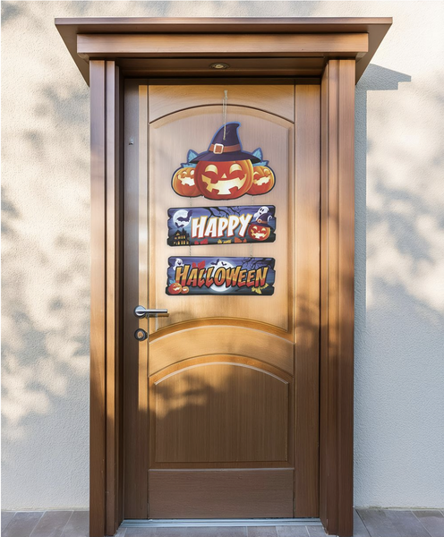 Dekoracja halloweenowa, drewniany znak wiszący.