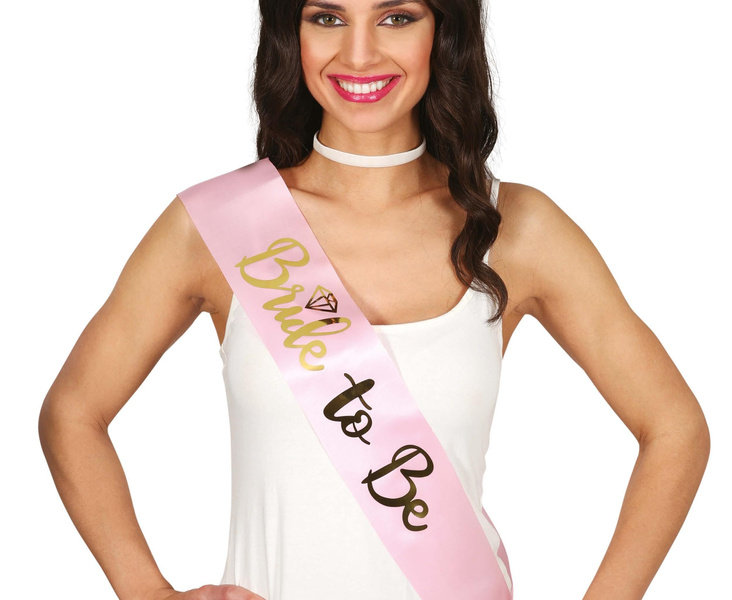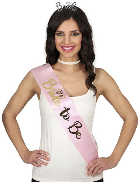 - Różowa szarfa z napisem "Bride to Be",