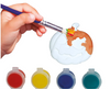 - W zestawie: farbki i pędzelek, kolory farbek ( czarny, pomarańczowa, zielona, żółta ).