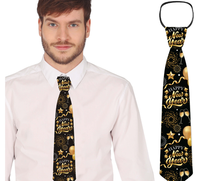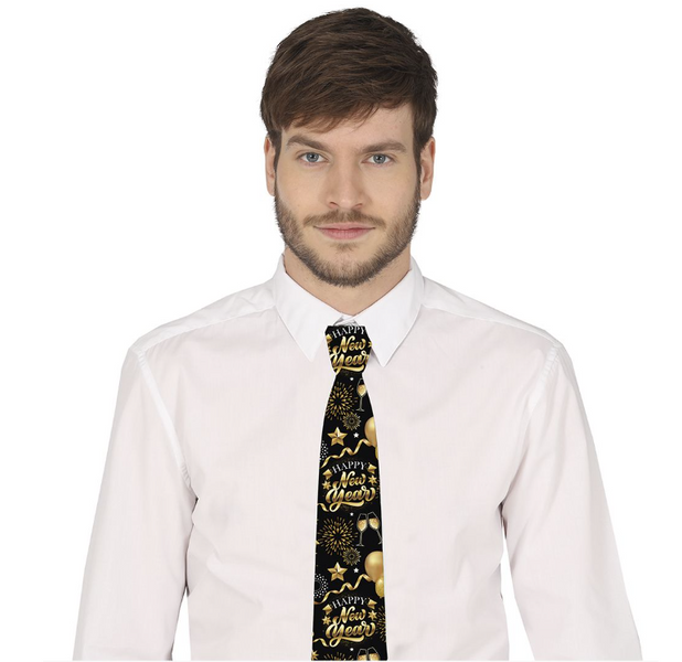 - Elegancki czarny kolor z złotymi motywami sylwestrowymi.