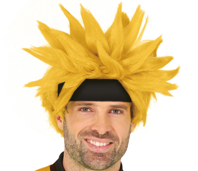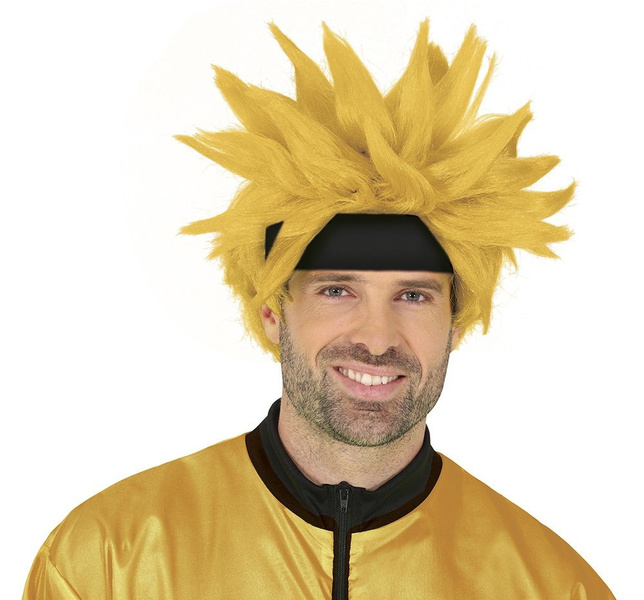 Żółta peruka z fryzurą w stylu postaci z mangi.