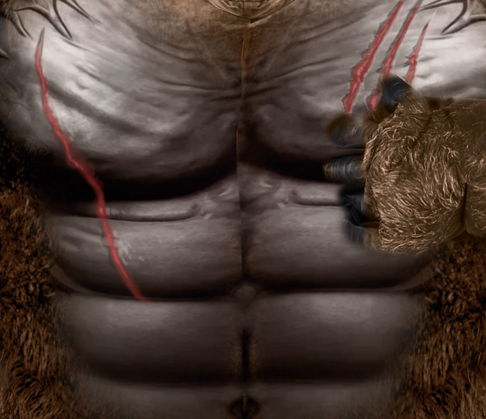 Posiada inny materiał naszyty na oczy, który umożliwia widoczność.