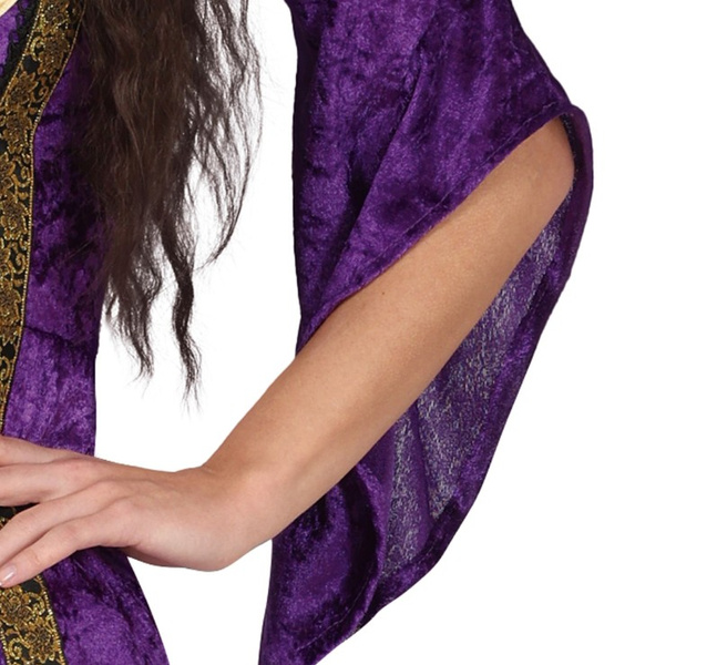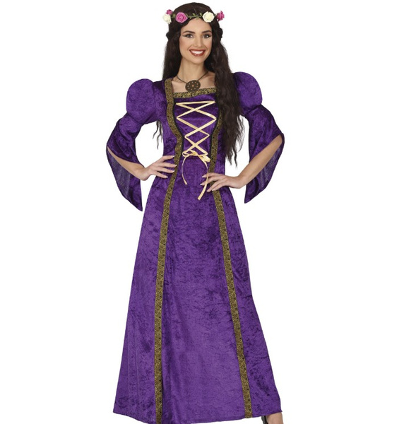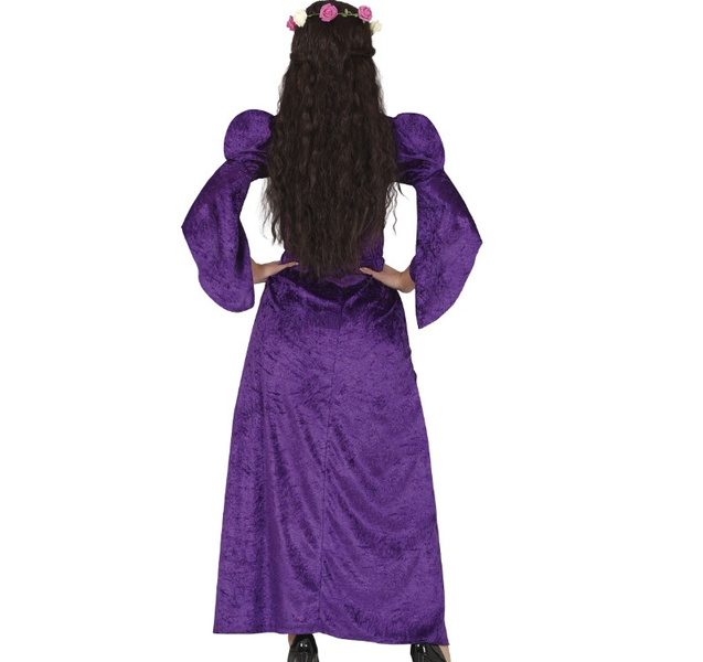 Suknia średniowiecznej damy w kolorze fioletowym.