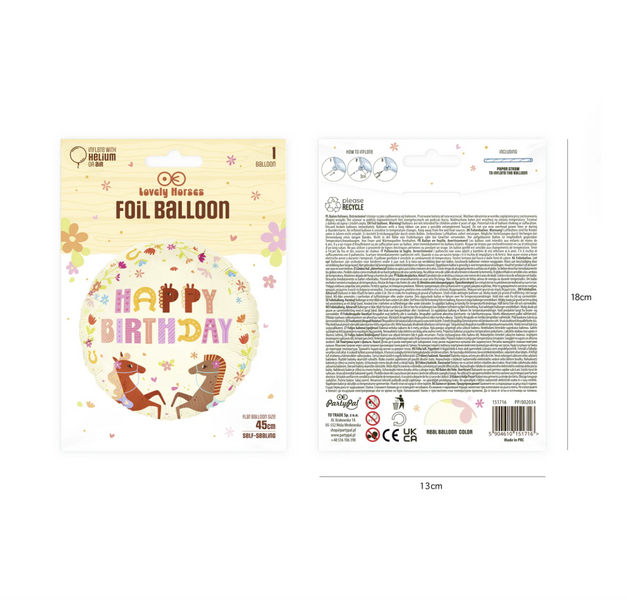 BALON FOLIOWY HAPPY BIRTHDAY KONIKI 45 CM