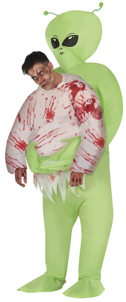 Nadmuchiwany strój przedstawiający kosmitę uprowadzającego człowieka.
