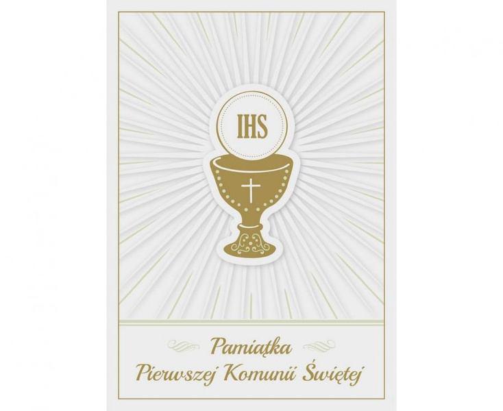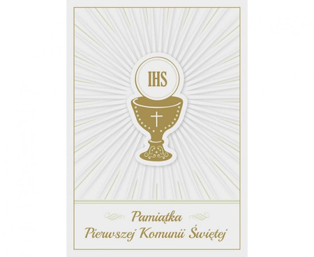 KARTKA OKOLICZNOŚCIOWA KOMUNIJNA, KIELICH IHS, ZŁOTA Kolor: złoty Materiał: papier Ilość: 1 szt. Producent: AB Card W zestawie: kartka okolicznościowa oraz koperta