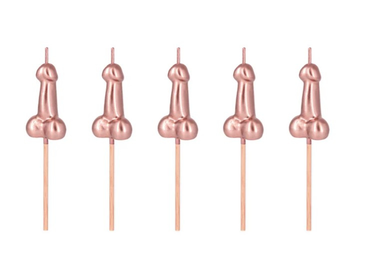 - Komplet zawiera 5 świeczek w kształcie penisa w kolorze rose gold.