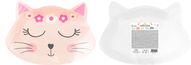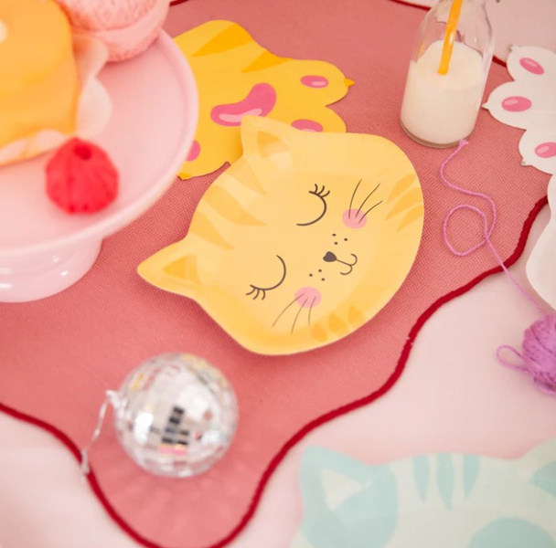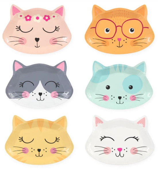 • 6 papierowych talerzyków w zestawie – każdy z innym, kolorowym kotkiem.