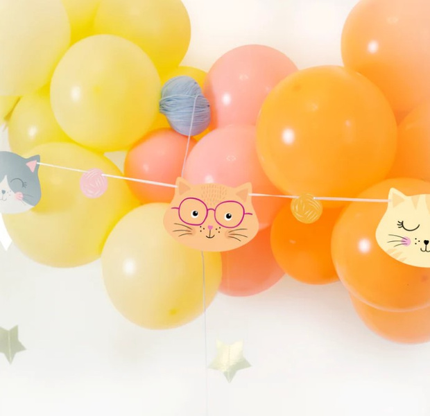 - Każda główka kotka ma unikalny kolor, tworząc wesołą i zróżnicowaną dekorację.