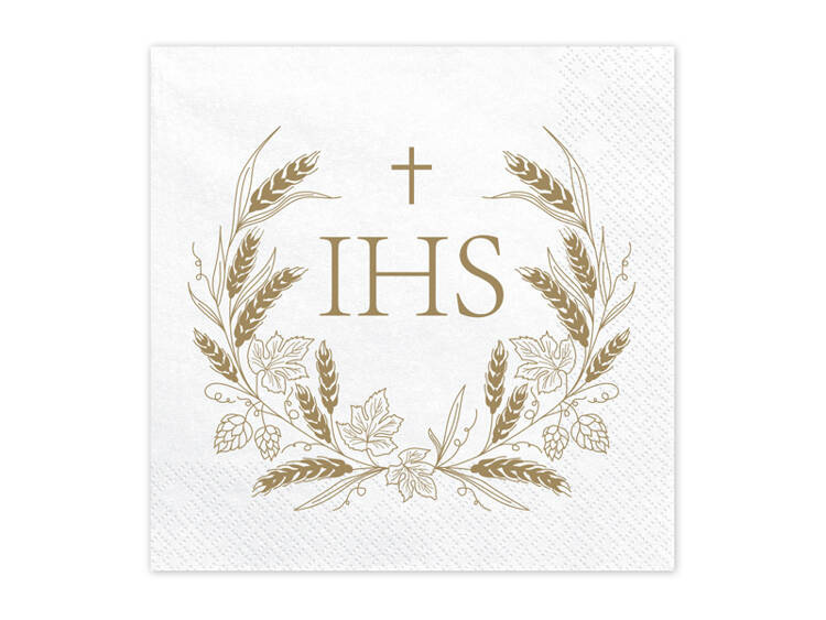 – Serwetki papierowe IHS – białe ze złotym nadrukiem, eleganckie i praktyczne; wymiary po rozłożeniu ok. 33 x 33 cm, po złożeniu ok. 16,5 x 16,5 cm; 1 opakowanie zawiera 12 sztuk.