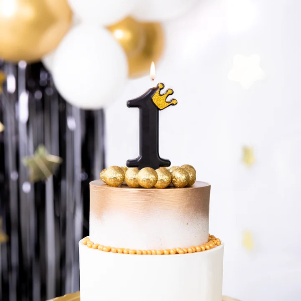 Świeczka urodzinowa cyfra 1 ze złotą koroną