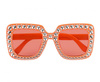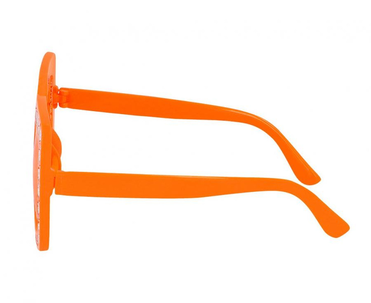 Okulary w pomarańczowym kolorze ozdobione błyszczącymi kryształkami.