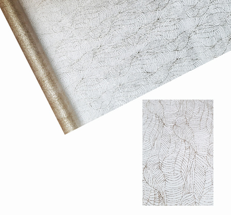 Organza zdobiona jednostronnym brokatowym nadrukiem.