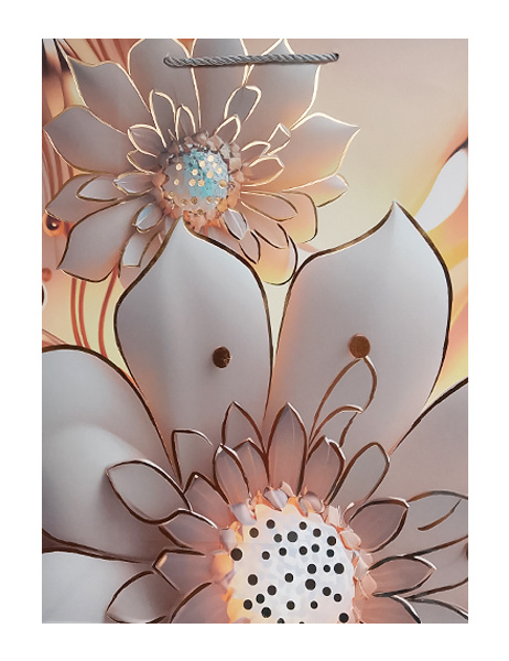 Torba prezentowa w kolorach brązu, beżu i bieli.
