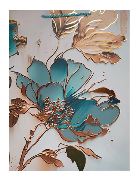 TORBA PREZENTOWA KWIAT NIEBIESKO-ZŁOTY 31X40X12 CM