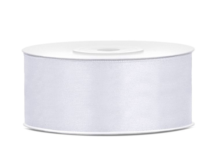 -satynowa tasiemka w kolorze białym o długości 25 m i szerokości 25 mm,