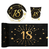 -bieżnik wykonany z flizeliny w kolorze czarnym ze zlotym nadrukiem liczby 18 i gwiazdek o wymiarze 30 x 500 cm,
