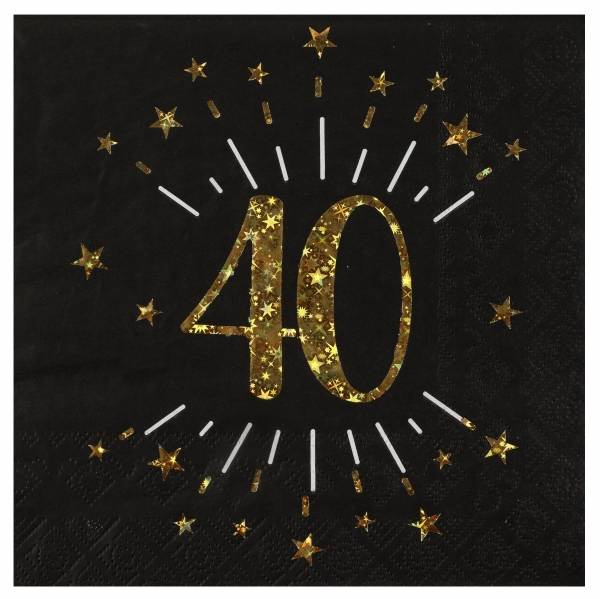 SERWETKI CZARNE 40 URODZINY 33 CM 10 SZT.Cena: 15,75 zł / szt.