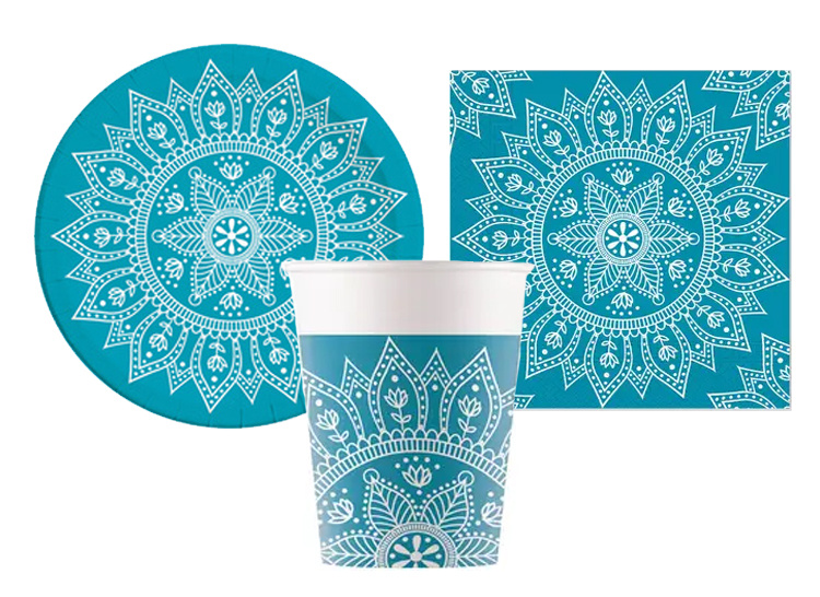 TALERZYKI PAPIEROWE NIEBIESKIE-BIAŁE MANDALA 23 CM 8 SZTCena: 11,70 zł / szt.