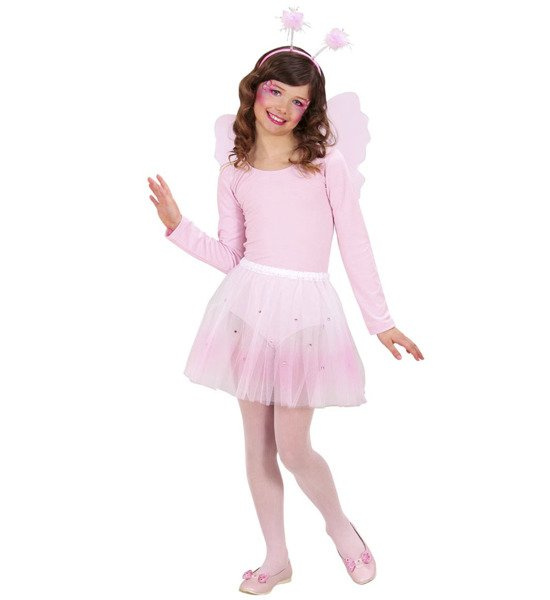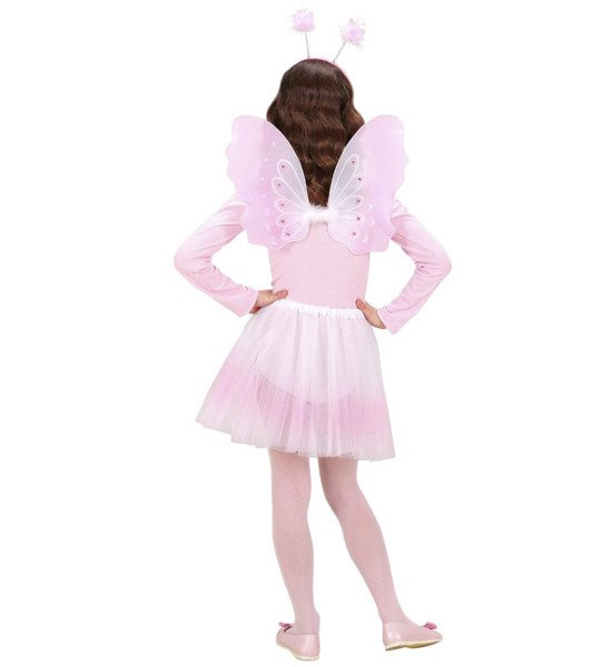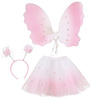 Skrzydła w kolorze różu o solidnej konstrukcji z pięknym wzorem i doczepionymi koralikami. Mocowane za pomocą szelek z gumek.