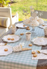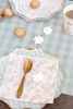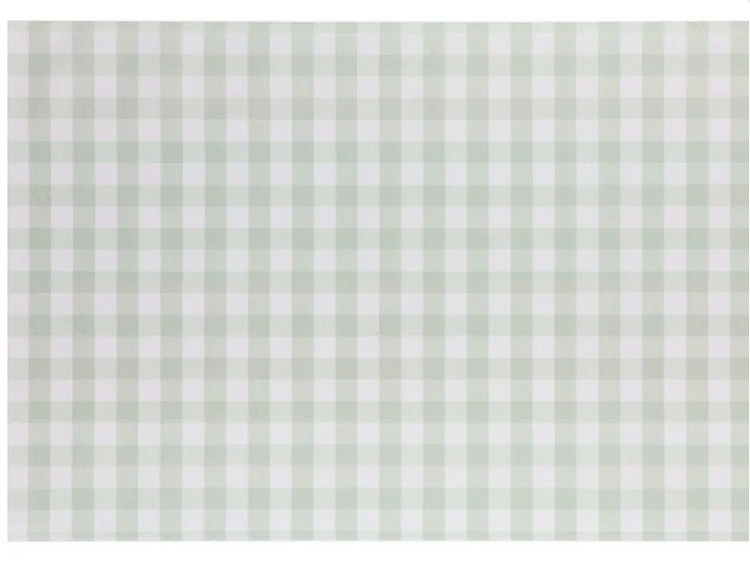 - Delikatny wzór w kratkę w odcieniach szałwiowej zieleni i bieli.