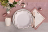 - Kolor: biały z kropkami i ramką w kolorze różowego złota