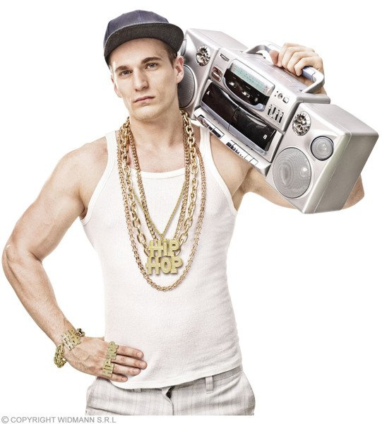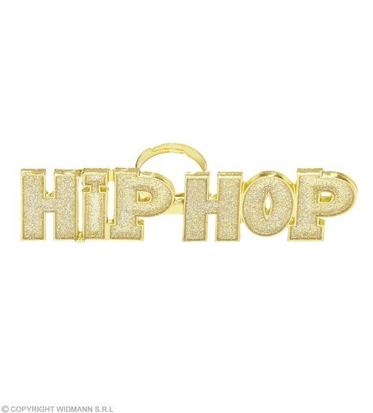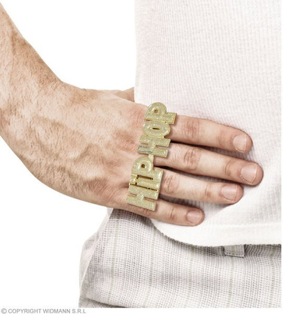 Pierścionek w kolorze złotym w postaci napisu Hip-Hop.