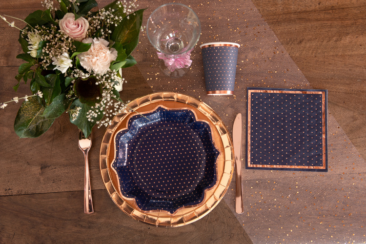 Serwetki Papierowe Granatowe z Różowo-Złotymi Kropkami