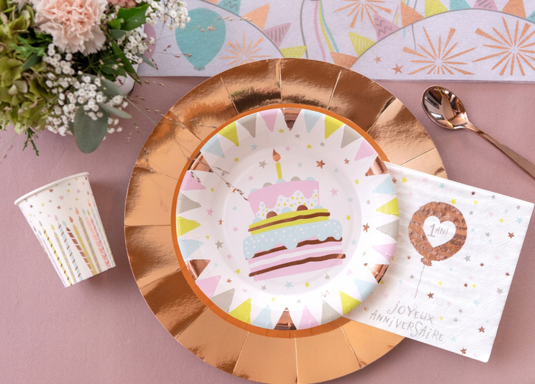 - Kolor: biały z kolorowym nadrukiem tortu i gwiazdek