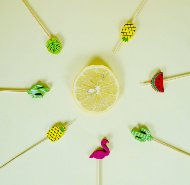- Zróżnicowane wzory zdobień w zestawie: ananasy, arbuzy, flamingi, liście oraz kaktusy.