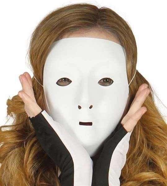 Artystyczna maska koloru białego z cienkiego tworzywa sztucznego.