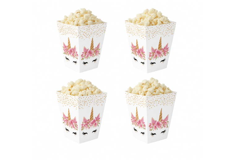 - Praktyczne pudełka na popcorn, chipsy, słodycze i inne przekąski.