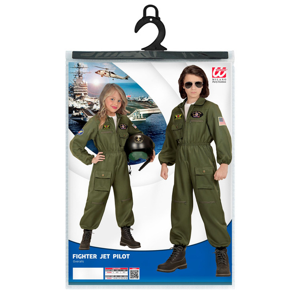 Kombinezon z długim rękawem, w kolorze militarnej zieleni, ozdobiony naszywkami.