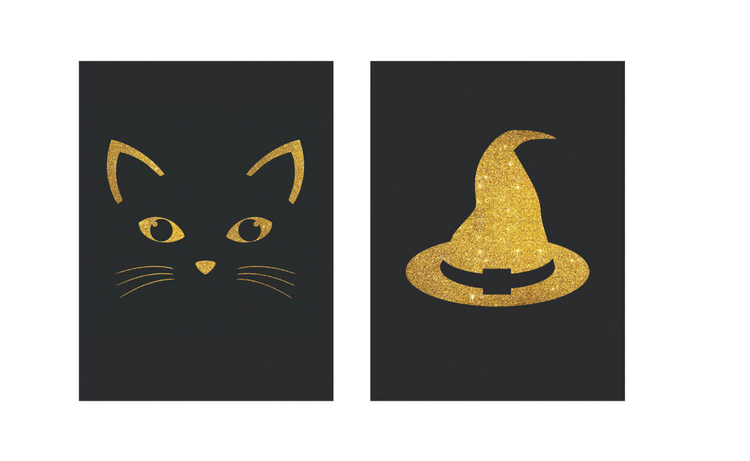 - Samoprzylepne etykiety z nadrukiem czarownicy i kota.