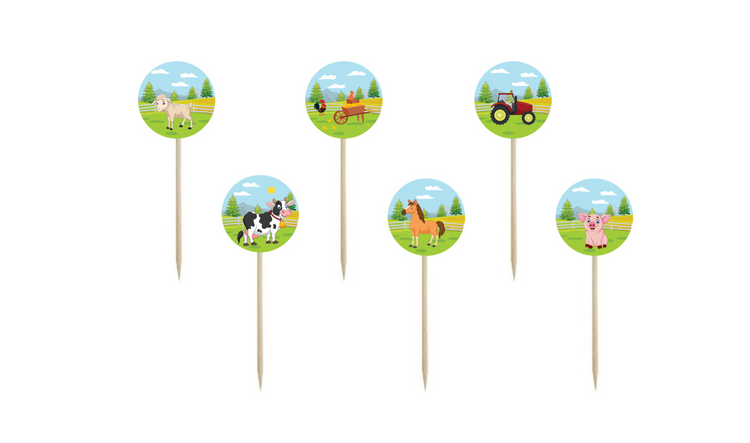 - Komplet zawiera 6 sztuk dekoracji z motywem zwierzątek z farmy.